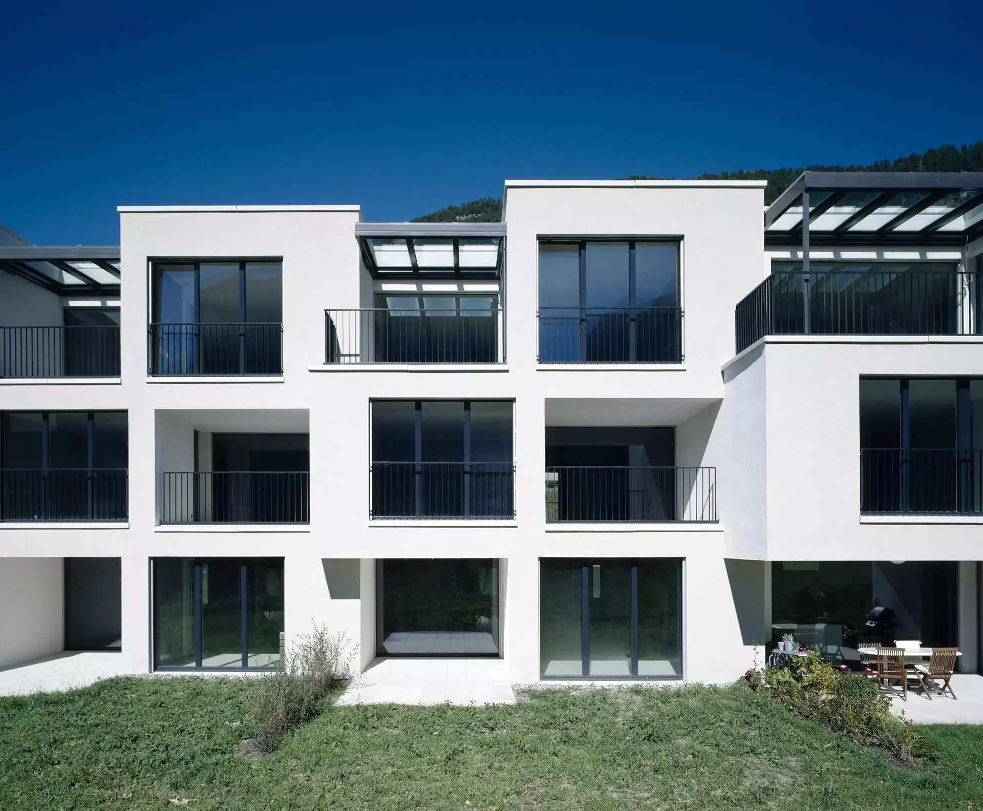 With their cube-shaped design, the five buildings in the residential complex contain 2½-, 3½- and 4½-room apartments, all featuring a high-specification finish and generous living space. The striking cubic shape of the buildings creates a lively variety in the floor plans, making each apartment a distinctive and individual home. Some of the 18 residential units enjoy direct access to the garden, while the other apartments have sheltered, south-facing loggias or terraces that offer a private oasis of peace and relaxation.