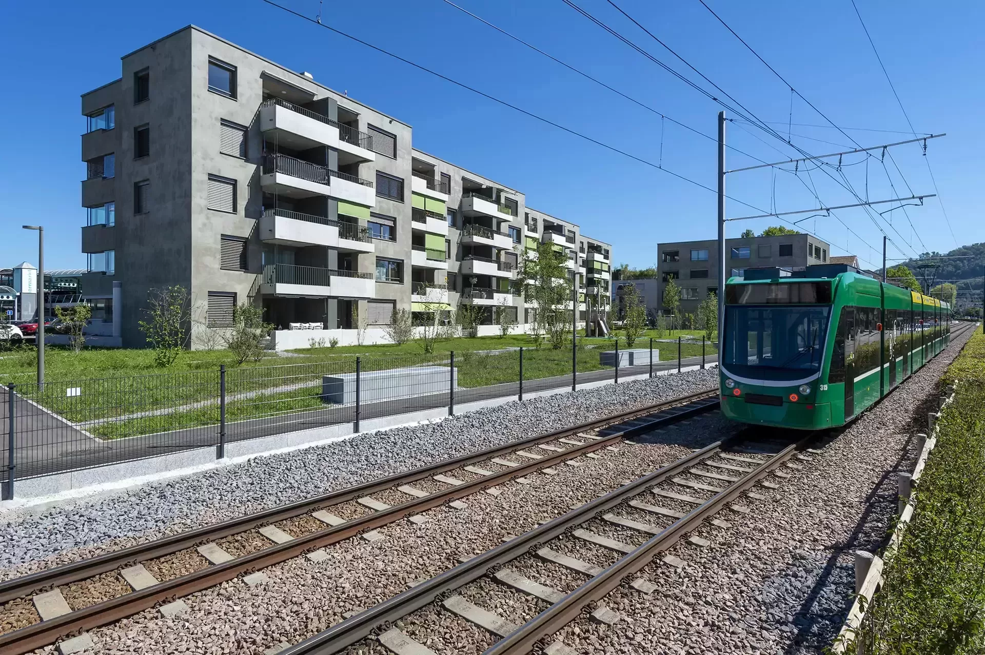 Located around one kilometre west of the lively town centre and Muttenz railway station, the charming «Zum Park» area offers a perfect mix of proximity to the urban centre and quiet residential surroundings. To the north it borders the lively St. Jakobstrasse, while to the south the new «Zum Park» tram stop takes you to the heart of Basel in just 13 minutes. To the east of the site is a peaceful residential neighbourhood with small apartment blocks. When it comes to infrastructure, the neighbourhood has plenty to offer: shops, bars, restaurants as well as sports and recreational facilities can all be found nearby. The renowned University of Applied Sciences and Arts Northwestern Switzerland (FHNW) is also just a short walk away. An ideal location for anyone who enjoys urban life but also values a quiet residential area.