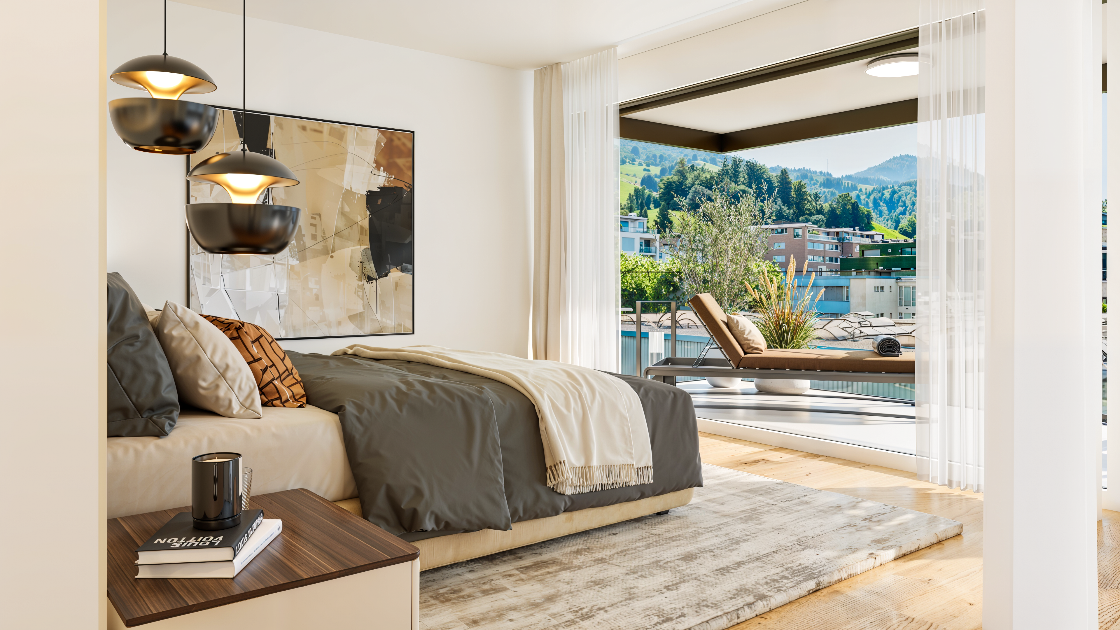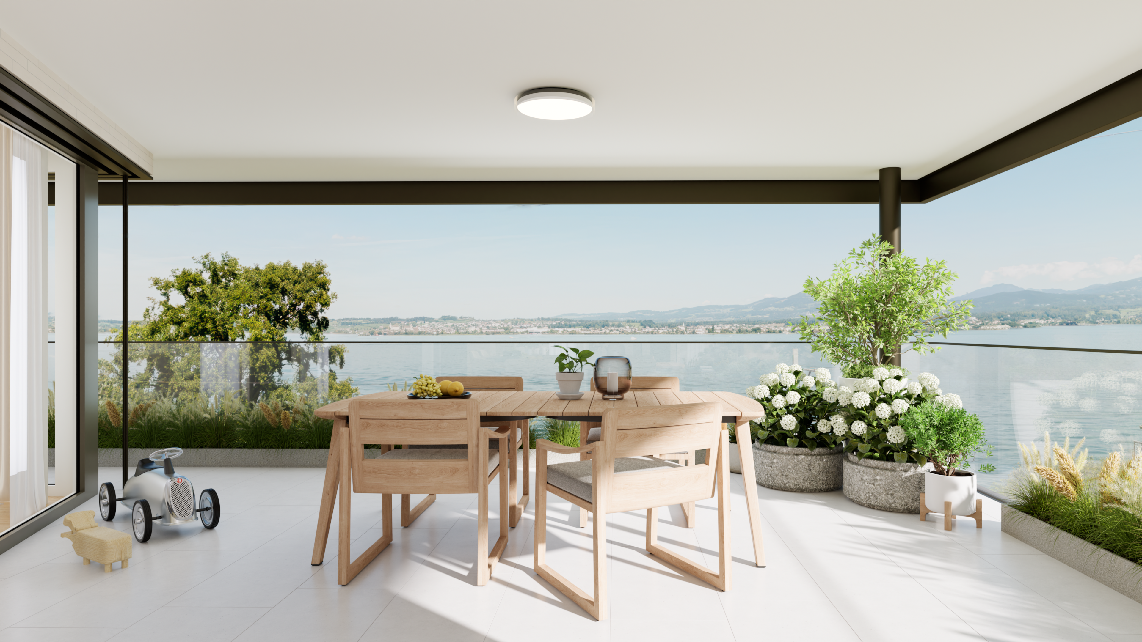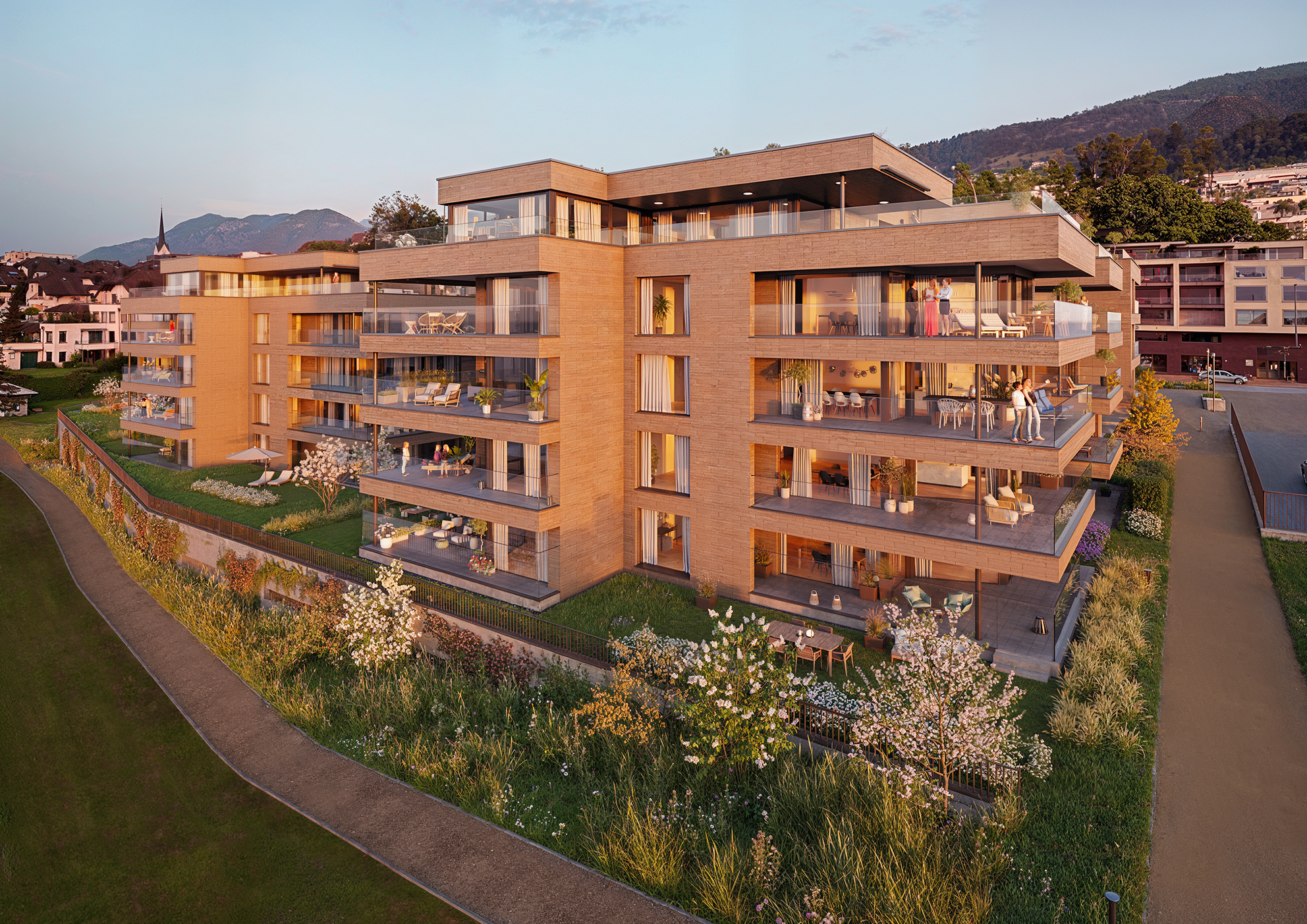 In Altendorf, on the idyllic southern shore of Upper Lake Zurich, a unique residential project that combines sophisticated architecture and an exclusive location is taking shape. The buildings have been skilfully positioned so that each apartment will enjoy a picturesque view of the lake and optimal sunlight at the same time. The living and dining areas, complemented by charming terraces, are orientated alternately to the east and west, creating a pleasant sense of space. Each apartment is lit from two sides and offers flexible furnishing options as well as an impressively spacious corner living and dining area with seamlessly integrated terrace – these are spaces that are designed to be enjoyed.